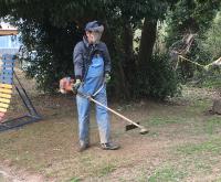 運動場や校舎周辺の除草作業、松の木の剪定、学級花壇の除草作業、草置き場から草の撤去、