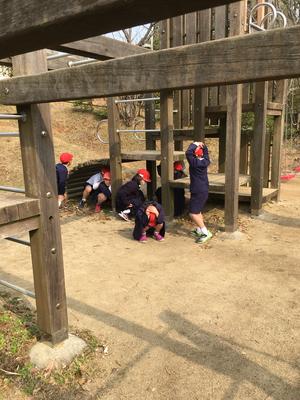 すぐに頭を押さえたり、遊具に下に隠れたり、運動場の真ん中に集まったりする行動が