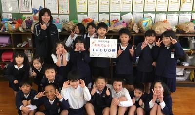 玉水小学校の子供達にこの両マラソンに参加される人を元気づけようと