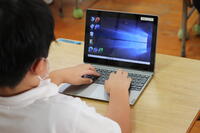 タブレットの使い方にもずいぶん慣れてきた2年生は、タブレットを起動し、パスワードを
