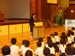 子ども達の前で挨拶をされた中山先生は1ヶ月前と比べるととても落ち着いて話をされていました。きっと、子ども達は中山先生との出会いで多くの思い出ができたことでしょう。そして、中山先生が来られなくなると寂しくなるのでしょう。