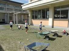 今日は、愛校愛郷作業でした。1年生から6年生まで玉水小学校全員で学校をきれいにする日でした。学校の花壇、運動場の草取り、学級園、教室の窓ふき、などなど学校のありとあらゆる場所をきれいにしました。どの子も、本当によく仕事しました。玉水小学校の子ども達はとてもよく働きます。感心します。