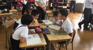 6月22日(木) 5校時に2年生国語「スイミー」の研究授業がありました。この授業は、玉名・荒尾の教育会の事業の一環で行われたものです。多くの先生方の参観の中で行われました。子ども達は、班での活動に一生懸命取り組んでいました。