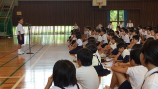 6月29日(木)2校時 校内童話発表会がありました。発表した6人は、学級代表らしく素晴らしい発表をしてくれました。発表を聞いていた子供達も、入場の態度、話の聞き方が、良くできていました。うなずいたり、真剣なまなざしなど、発表する子供達も話しやすかったと思います。童話発表会をきっかけに、本を読むことの楽しさに一人でも多く気づいてくれることを願います。※写真は、全員、4年橋本奈都さん、5年米野真央さん、6年永廣桃羽さんです。