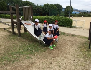 6月23日(金)昼休み 6年生が1年生と鬼ごっこをして遊んでいました。理由を尋ねてみると、係の子ども達の計画で、1年生と一緒に遊ぶ計画を立てて行っているものでした。また、6年生は、1年生を誘って図書室に本を借りに行ってくれています。6年生ありがとうございます。