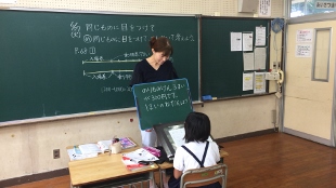 6月27日(火)1校時 5年算数「同じものに目をつけて」の学習が行われていました。内容は、5年生と一緒です。補助の黒板を活用して工夫されていました。