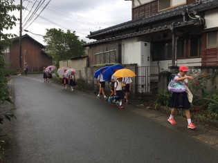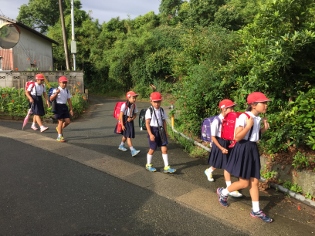 6月29日(木)7:40 南坂から登校する子供達は、立花区8班、部田見上区の6班のうちの5班の合わせて13班が登校しています。1年生には、赤崎山や学校近くの坂は、大変ですが、毎日頑張って登校しています。高学年の班長さんも大変です。みんなをまとめて連れてきてくれることに感謝しています。ただ、遅れてくる子がいたり、トラブルがあったりすることもあります。学校でも指導していますが、家庭でも集合時間に遅れないようにや班長としての自覚等、話して頂けるとありがたいです。