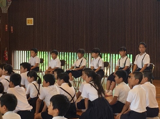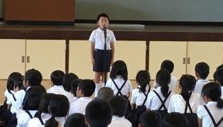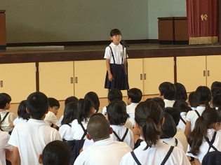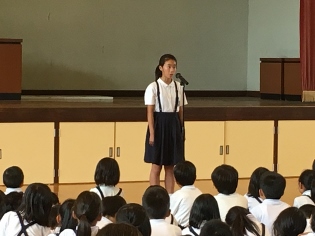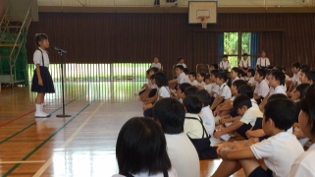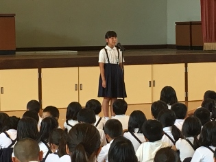 6月29日(木)2校時 校内童話発表会がありました。発表した6人は、学級代表らしく素晴らしい発表をしてくれました。発表を聞いていた子供達も、入場の態度、話の聞き方が、良くできていました。うなずいたり、真剣なまなざしなど、発表する子供達も話しやすかったと思います。童話発表会をきっかけに、本を読むことの楽しさに一人でも多く気づいてくれることを願います。※写真は、全員、4年橋本奈都さん、5年米野真央さん、6年永廣桃羽さんです。