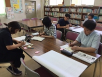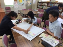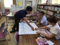 7月25日(火) 今日は、先生方の頑張りを紹介します。①8:30~9:40 職員作業をがんばりました。資料室、農具倉庫、農具倉庫裏、ひまわりの農具置き場、職員室の書棚を分担して汗びっしょりになって片付けました。ただ、時間が足りずに後日少しずつ整備して、夏休み中には終えたいと思います。10:00~は、県立教育センターより田上指導主事を招いてのカリキュラムマネジメントの研修を行いました。次期学習指導要領のキーワードとなるものです。(下の写真は、その研修の様子です。)午後は、13:30~人権レポート研修を行います。今日は丸一日、作業と研修をがんばります。(この記入は、最後の研修前です。)