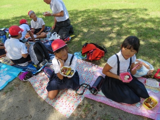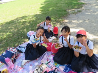 9月28日(木) お昼休みには、おうちの人から作ってもらったお弁当をおいしく食べました。本当に楽しくてうれしそうです。