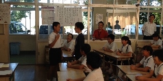 9月29日(金)5校時 校内研修の研究授業として、5年生の 外国語活動「しおりをつくろう」がありました。子ども達の学習態度の良さ、意欲が感じられる授業でした。導入の工夫、活動の工夫、振り返りシートの工夫がなされていました。今回は、天水中学校と小天小学校からも1名ずつ参加していただきました。