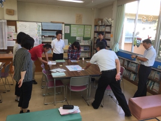 9月29日(金) 放課後 5年生の研究授業を受けて、ワークショップで授業検討会を行いました。子ども達の活動の様子から、成果と課題を出し合い、改善点を話し合いました。ここで確認した改善点をこの後の授業に生かしていくことが大切になります。写真は、ワークショップの様子です。