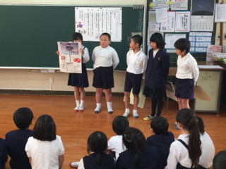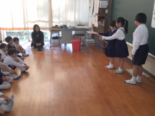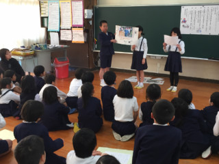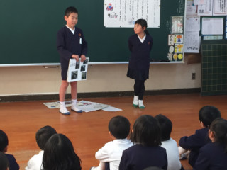 12月15日(金) 4校時 2年生「生活科」で、今までの取組のまとめとして、1年生を招待しての発表会が行われました。グループごとに郵便局や給食センター、動物園訪問等について絵を描いたり、クイズを取り入れたり工夫してまとめていました。1年生も聞き方がすばらしく、クイズに答えたり質問をしたりして楽しく参加していました。