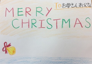 12月18日(月) 5校時 4年生は、モーガン先生と英語の勉強をしました。外国のクリスマスの様子を学んだ後、クリスマスカード作りをしました。とても楽しいカードができあがりました。写真は、できあがったクリスマスカードです。