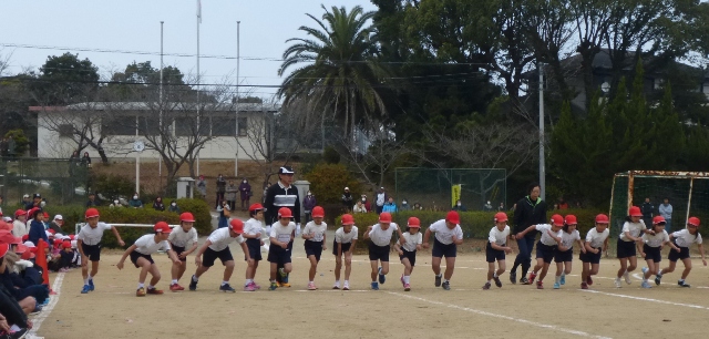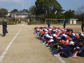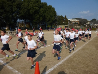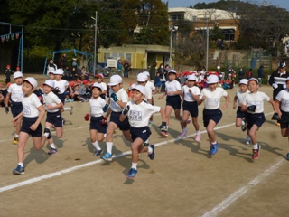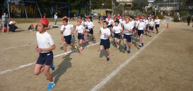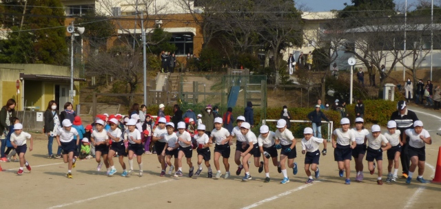 12月19日(火) 2・3校時 校内持久走大会を開催しました。途中からは、日もさして汗ばむほどの良い天気となりました。子どもたちは、自分の目標に向けて「考動力」を働かせて練習に取り組み、今日は、「やり抜く力」を発揮し、目標達成に向けて臨みました。地域の皆様、保護者の皆様も大勢応援に来てくださり、玉水保育所の園児のみなさんと一緒に温かい声援を送っていただきました。写真は、開会式と低学年の様子です。