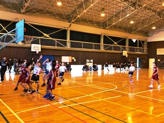1月27日(土) 第二試合目は、南関第一小学校との対戦でした。玉水小44対5南関一でした。リズムが出てきて、シュートもおもしろいように決まりました。最後の大会で優勝を飾ることができました。みんなよく頑張りました。保護者や友だちの応援も力になりました。応援していただいた保護者の皆様や子どもたち、そして大会運営をしてくださった先生方大変お疲れ様でした。ありがとうございました。ユニホームは同じ色ですが、第二試合目の写真です。