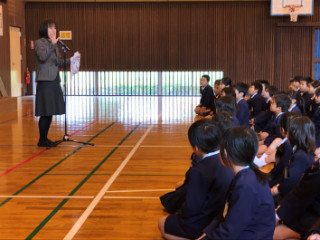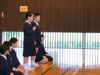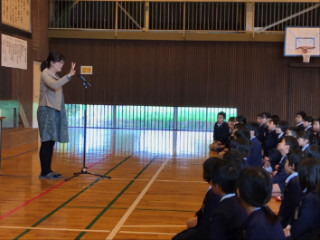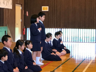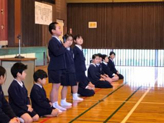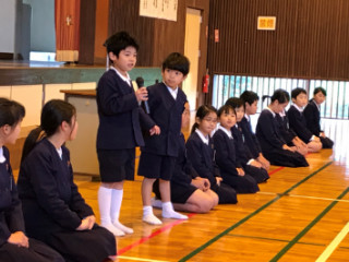 3月26日(月) 本年度の3月31日をもって本校を転出する児童がいます。4年生の齊藤悠月さんです。3月22日(木)の修了式終了後、お別れのあいさつをしてもらいました。とてもさみしくなりますが、4月から通う玉名町小学校でもきっと頑張ってくれると思います。写真は、その時の様子です。
