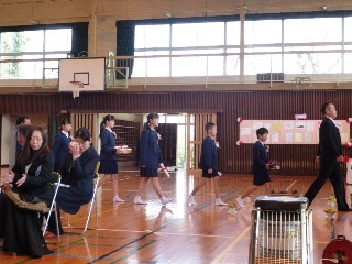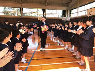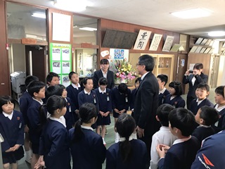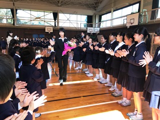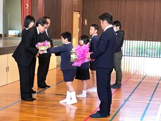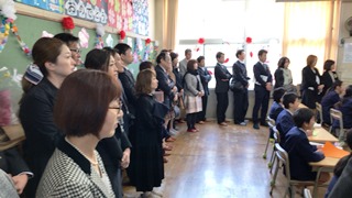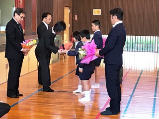 3月28日(水)今日は退任式でした。在校生と先日卒業した6年生も来てくれました。年度末の異動で4名が転出することになり安した。子供達の代表からとPTA会長さんより温かい励ましの言葉を頂き、大変ありがとうございました。
