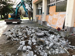 3月30日(金)ここ数日、北校舎駐車場の付近で工事があっていましたが、暖房のために埋めてあった重油タンクの撤去が行われていたものです。4月から、各教室にエアコンが設置されるため、不要になったからです。