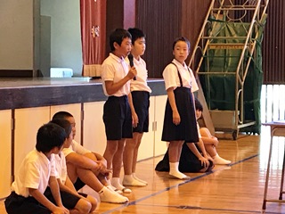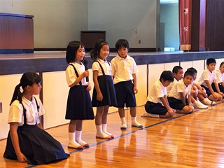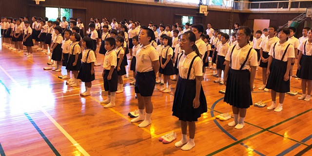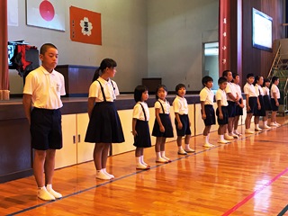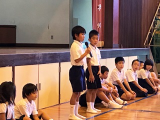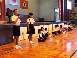8月27日(月) 夏休みが明け、子供達が登校してきました。学校に子供達の明るい声が聞こえるようになりました。明日から充実した教育活動が行えるよう頑張っていきたいと思います。ご協力どうぞよろしくおねがいします。集会では、私から、人工知能AIに勝つために必要な3つの力について話をしました。学級代表の子供達からは、夏休みに頑張ったことと、これから頑張ることの発表がありました。その中に、お母さんが少しでも楽になるように手伝いを頑張った発表がありました。感心しました。