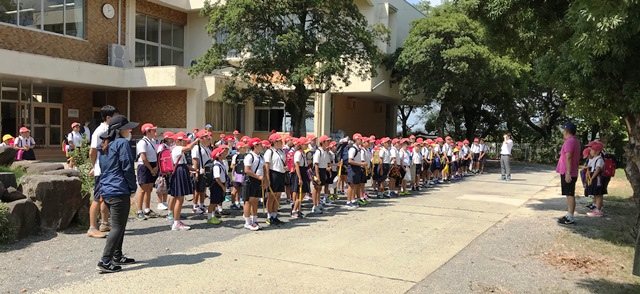 8月27日(月) 今日は、午後2時に一斉下校でした。今年は、通学路のブロック塀調査や危険箇所調査、防犯のための危険箇所の調査を実施しています。ブロック塀の調査と危険箇所調査は行いましたが、今日は、子供達にも帰るとき、防犯面で危ない場所を確認してもらうように伝えました。家庭でもお気づきがありましたら、お知らせください。