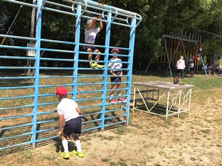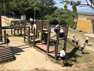 8月28日(火) 子供達は、強い日差しに負けずに外に出て遊んでいました。みんな楽しそうに遊んでいます。給水はしっかりとっています。