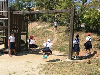 8月28日(火) の業間の様子です。3年生がブランコで楽しそうに過ごしていました。