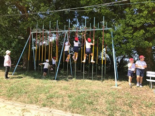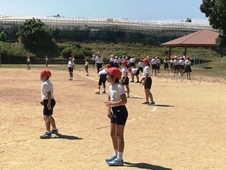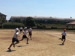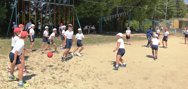 8月29日(水)の業間に全校体育をしました。暑い中、子供達は、雲梯や肋木、登り棒や鉄棒を使ったサーキット(低学年)、テニスボールを使ったキャッチボール(中学年)ドッヂボール(高学年)に分かれて行いました。暑い中、みんな頑張りました。