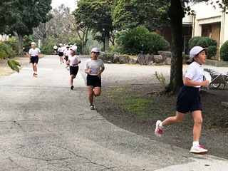 11月26日(月) 2校時に34年生合同の持久走の授業がありました。校舎周辺を走りますが、急坂もあり、結構きついようです。みんな自分のペースを探しながら取り組んでいました。