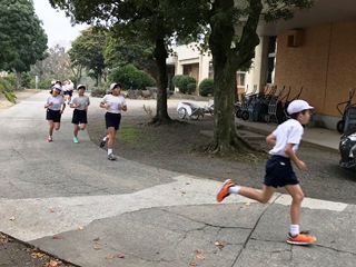 11月20日(火) 今日の2時間目56年生が持久走の授業の1時間目でした。各学年ABの2チームに分かれ、ペアで学習を進めていきます。タイムを記録し、昨年度からの短縮を目指す児童や目標タイムを設定し、その達成をめざす児童、自分に合ったペースを見つけそのペースで走り通すことが目標です。友だちと励まし合いながら、計画的に練習に取り組むなどやり抜く力の育成目指して取り組みます。