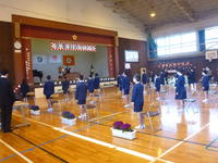 いすといすの間隔を広くとり、ドアを開けて換気しながらの卒業式でした。