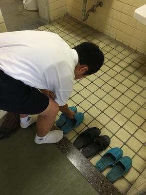 今日は2人の子が、トイレのスリッパを並べていました。