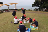 朝が早かったのでお腹が空いていました。楽しく芝生広場でお弁当タイムです。