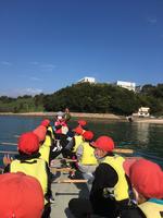 三艇に分かれてのペーロン船は海が穏やかで、とてもこぎやすかったです。初めて乗る子がほとんどでしたが、上手にこいで、楽しめていました。