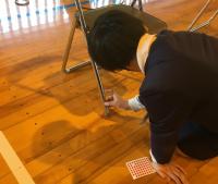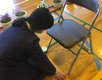 修了式が終わった後、5年生の子供達と職員で体育館の卒業式設営を行いました。
