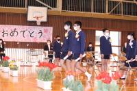 卒業式前に、民生委員の方々が、卒業生一人一人に記念の花束を持ってきていただきました。