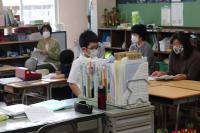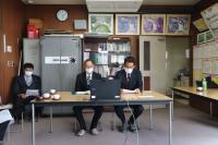 PTAの役員さん方に校長室においでいただいて今年の議事をリモートで各教室に伝える