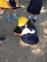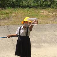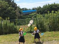 1年生の子供達が休み時間に虫取り網をもってトンボやバッタを捕まえていました。