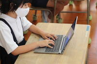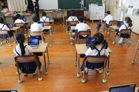 タブレットの使い方にもずいぶん慣れてきた2年生は、タブレットを起動し、パスワードを