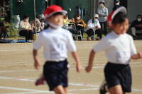 1・2年生は、徒走と玉入れの練習、3・4年生は、徒走・全員リレー、台風の目の練習、