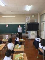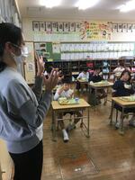 そのパンを食べる様子を見学に給食センターの栄養士の先生、橋本先生が学校に来られました。