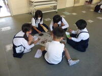 今日は、これまで学習したことを小天小学校の6年生の人たちとお互いに発表し合いました。