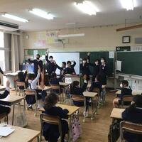 今日の児童集会は6年生がリモートで修学旅行の発表をしました。
