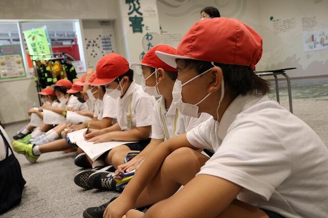 ありあけ防災館では、動画を見せていただき、「火遊びをしないこと」「火災に遭遇した時には『逃げる』『大人の助けを呼ぶ』」といった行動をとるようにお話いただきました。また、遊泳禁止となっている校区内の池で遊ばないように!というお話もありました。玉水小校区の危険な場所も熟知していらっしゃいました。
