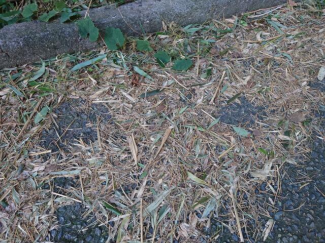 9月19日に被害の有無を確認した際には、北坂では竹が倒れて覆いかぶさり、笹の葉も一面にべったり張り付いている状況でした(下の左写真)。また、校地のあちこちに台風14号の影響で枝や葉が散乱していました。