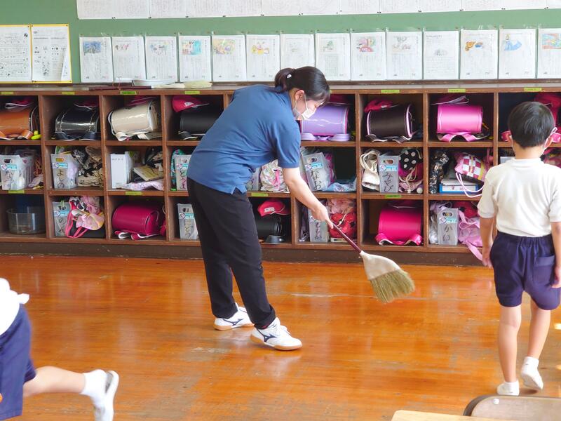 彼女は、幼いころから書道を習っておられ、素晴らしい作品を制作されています。本校の正面玄関には、小学校6年生当時に受賞された作品のレプリカを掲示しています。また、3月、4月には「卒業式」「入学式」の立て看板を毛筆で書いてくださっています。さらに、様々なスポーツも経験されています。子供にたくさんの刺激を与えてくれそうです。