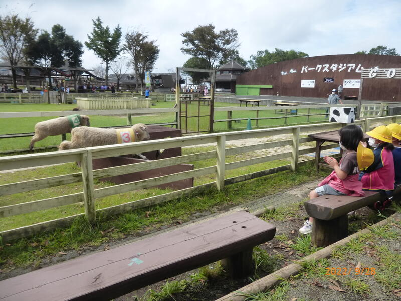 羊のレース応援では、自分が応援する羊を決めて見ることになりました。子供たちは、応援する羊に向かって、熱い声援を送っていました。応援した羊が勝った子供たちは大喜び、負けた子供たちは心の底から悔しがっている子もいました。何事も本気で取り組む1年生でした。