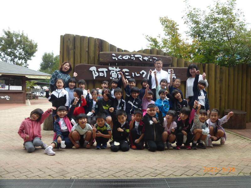9月28日(水)、1年生が見学旅行へ行きました。目的地は、らくのうマザーズ阿蘇ミルク牧場でした。