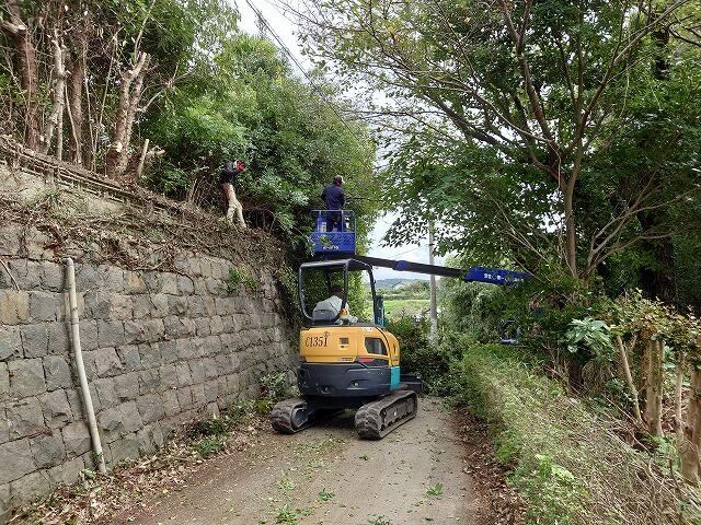9月29日(木)、グラウンド横の道の樹木やツタを伐採、撤去していただきました。きっかけは、地域の方からのお気づきでした。関係者の方にご相談いただき、今回の作業が実現しました。