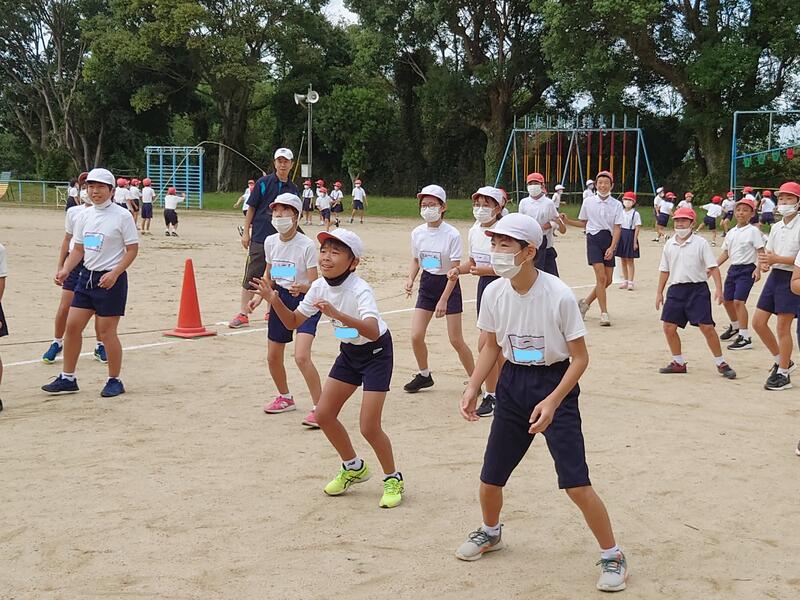 9月22日、全校体育を実施しました。これまでは、残暑が厳しいため熱中症予防のため、中止していました。久々の全校体育で、子供たちはしっかりと体を動かすことができました。